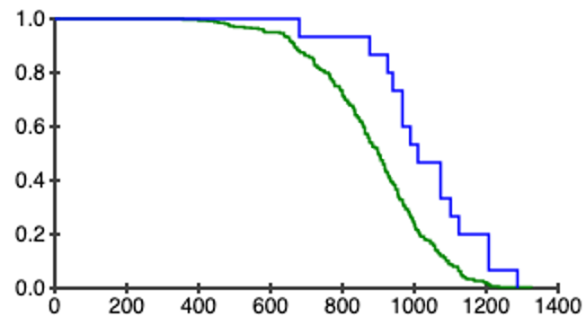 Below (1) is roughly how some substances in our experiment shifted the mortality curve of mice. (Rapamycin has a similar curve shift).